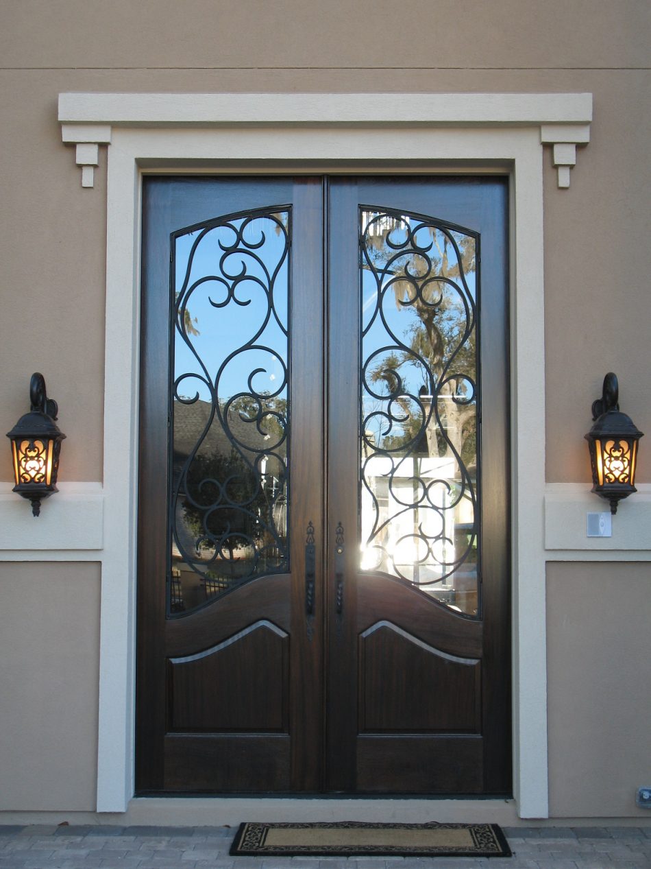 Красивые металлические двери со стеклом устанавливаются в Кремёнках на входах в загородные дома, коттеджи, рестораны, магазины. Если на лестничной площадке предусмотрена тамбурная прочная дверь, тол остекленную модель можно купить и для квартиры. Для увеличения уровня противовзломной защиты зона остекления закрывается кованой декоративной решеткой, соединенной с железным листом внутри створок.